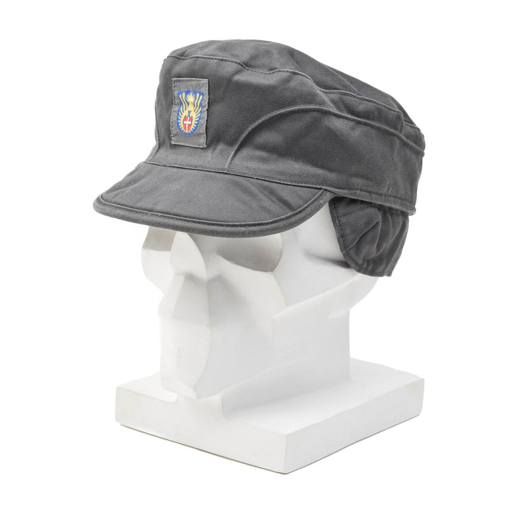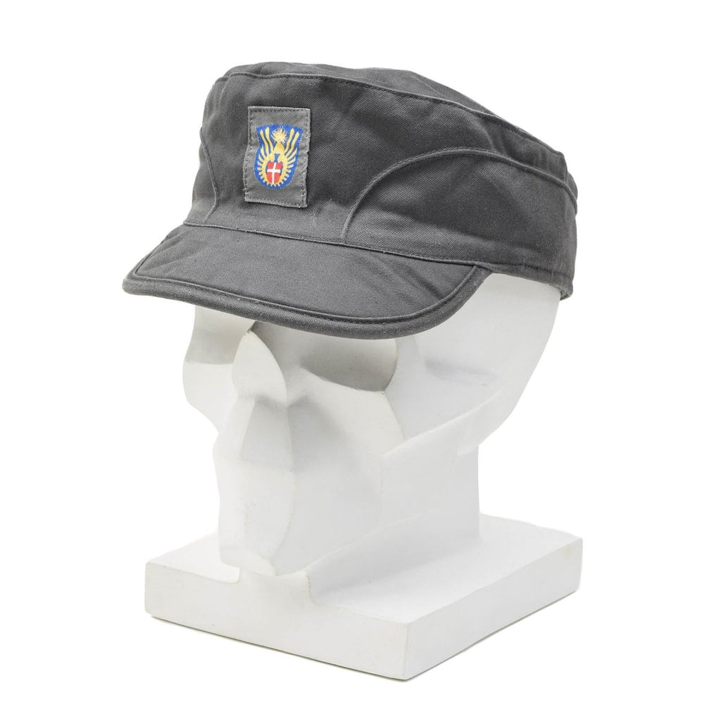 Présentation de la casquette militaire, un accessoire élégant et pratique qui allie fonctionnalité et design unique. Cette casquette militaire grise exclusive du Danemark présente un motif tête de mort, lui donnant un look avant-gardiste.