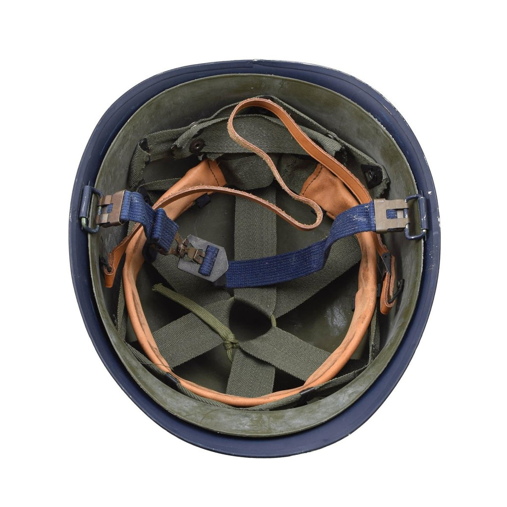 Améliorez votre collection de souvenirs militaires avec ce casque militaire belge original en acier M51 en bleu éclatant. Ce casque, doté de sa doublure intérieure en PVC, n'est pas seulement un morceau d'histoire mais aussi un symbole d'authenticité et de fonctionnalité.