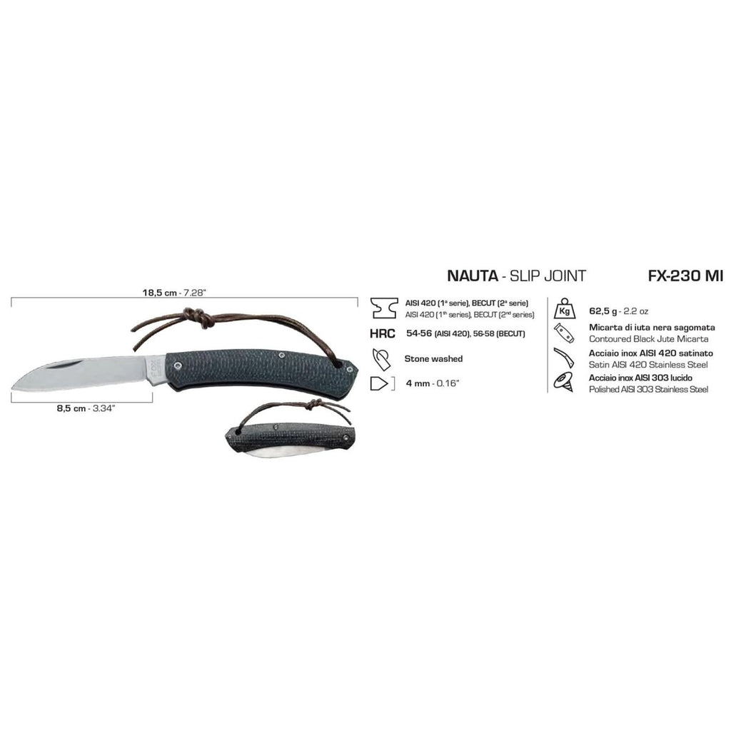 Fox Knives NAUTA couteau de poche compact tactique 420C outil pliant en acier micarta