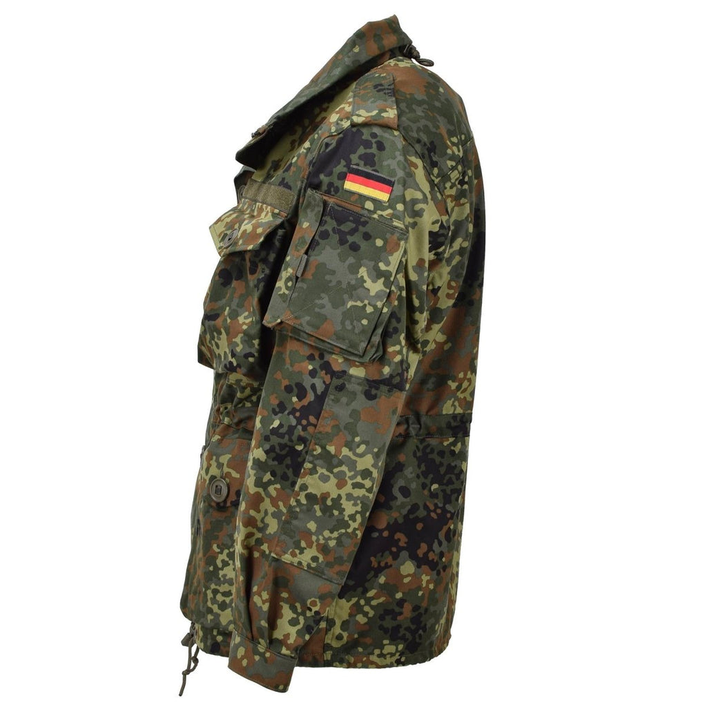 Présentation de la veste tactique de combat militaire Leo Kohler en camouflage flecktarn, un vêtement haut de gamme alliant style et fonctionnalité. Confectionnée à partir d'un mélange de coton durable, cette veste de l'armée allemande garantit confort et longévité.