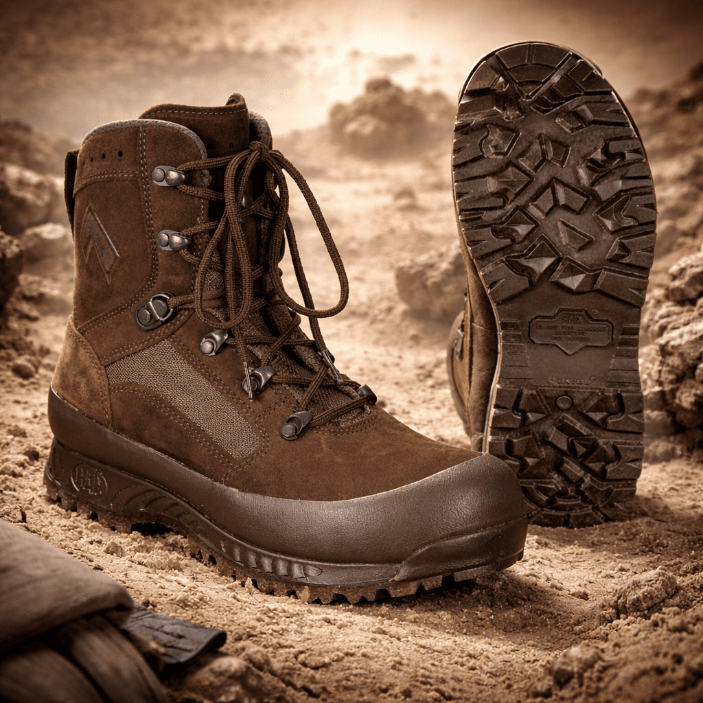 Ces bottes tactiques militaires britanniques originales pour femmes de HAIX sont conçues pour les conditions exigeantes sur le terrain et dans le désert. Le modèle High Liability est conçu pour répondre aux exigences militaires, offrant durabilité, confort et performances fiables lors d'un port prolongé. Fabriquées à partir d'une combinaison de daim et de textiles de haute qualité, les bottes sont à la fois respirantes et hydrophobes, aidant à garder les pieds au sec et à l'aise dans des environnements chauds et secs.