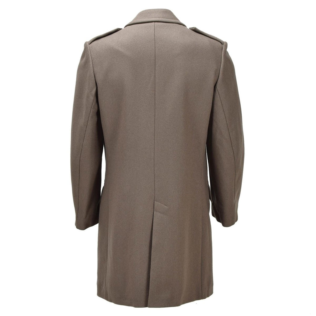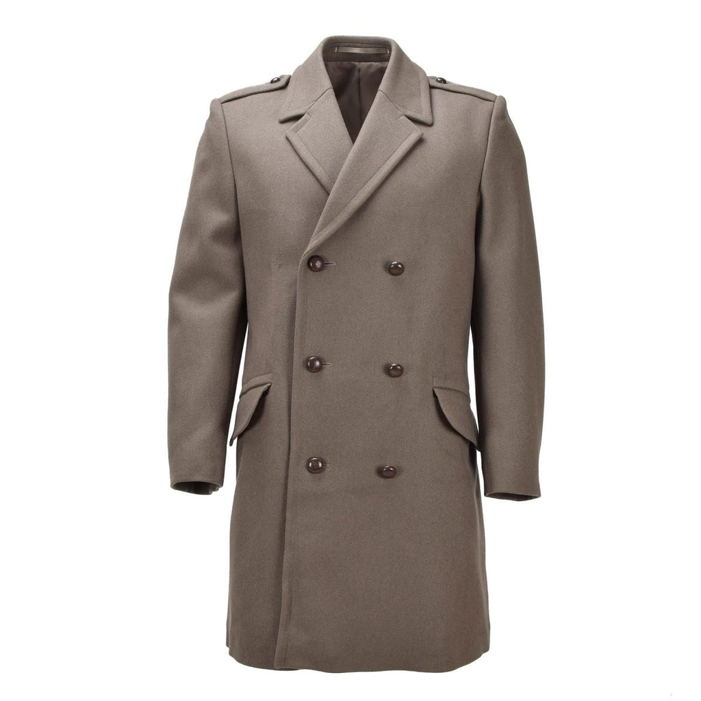 Ce manteau habillé en laine militaire néerlandais original à double boutonnage Army Issue Kaki est un authentique pardessus militaire excédentaire conçu pour les vêtements de service formels. Délivré au personnel des forces armées néerlandaises, il allie élégance militaire classique et construction durable.