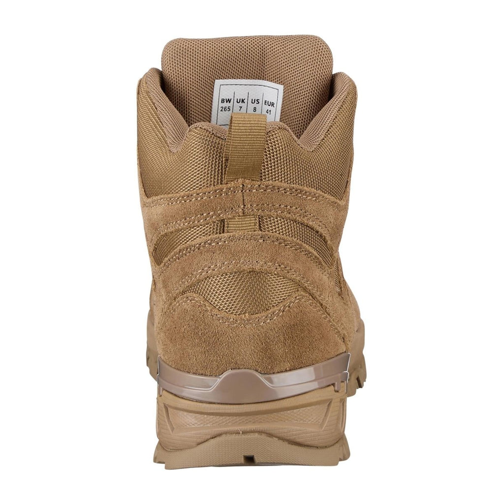 Ces bottes d'équipe coyote MIL-TEC se distinguent par des bottes en daim mi-mollet conçues pour mettre l'accent sur la mobilité et le maintien robuste de la cheville.