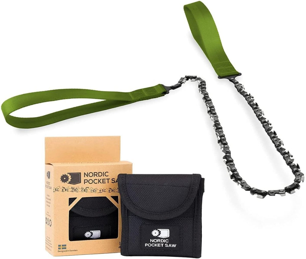 Légère, compacte et puissante. C'est ce qui caractérise la tronçonneuse à main compacte Nordic Pocket Saw et en fait un compagnon indispensable pour vos aventures en plein air. La chaîne est fabriquée en acier à haute teneur en carbone traité thermiquement, idéal pour les lames et spécialement développé pour résister aux conditions difficiles. Les poignées en nylon robustes sont extrêmement durables et offrent une prise en main confortable et sûre, même lorsqu'elles sont mouillées. L'étui peut être porté à la ceinture pour un accès facile ou rangé dans votre sac à dos.