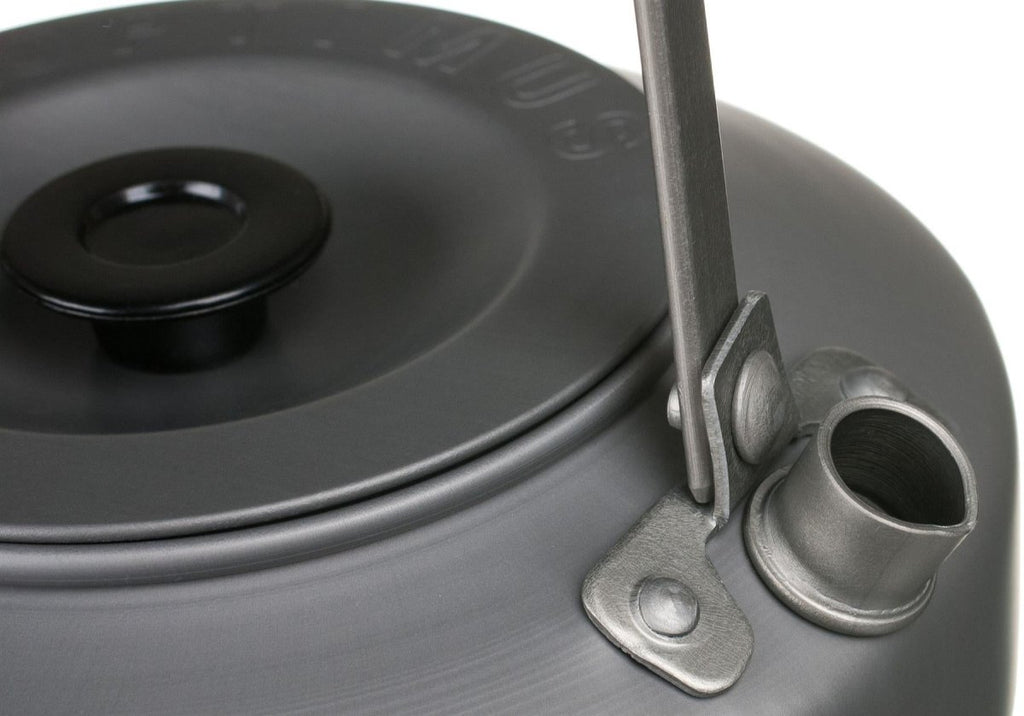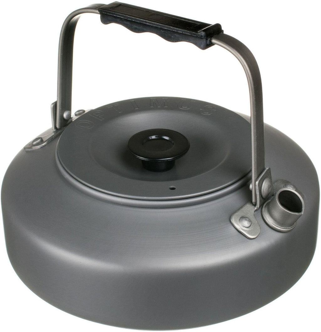 • De plus, la durabilité de la bouilloire vient de l’aluminium anodisé dur, qui peut résister aux conditions extérieures difficiles. Il résiste bien à l’usure, vous permettant de compter sur lui pour de nombreuses aventures. Cette conception robuste garantit que la bouilloire Optimus Terra reste un outil de confiance pour la cuisine en plein air.