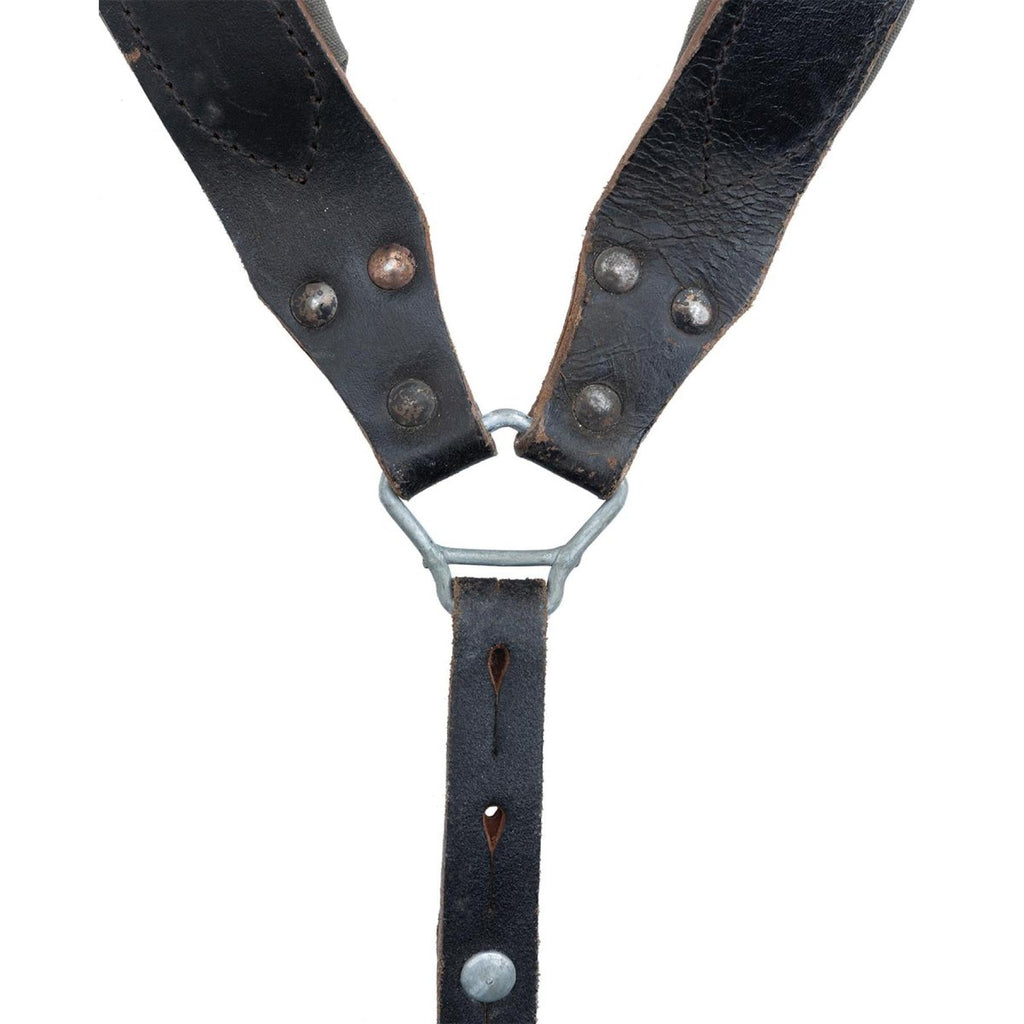 Présentation de notre pantalon à bretelles original de l'armée autrichienne, doté du design vintage Y-Strap. Ces bretelles sont confectionnées à partir de cuir durable, présentant des clips métalliques et une couleur noire classique. Conçu pour offrir soutien et stabilité, ce pantalon était un incontournable pour les soldats de l'armée autrichienne.