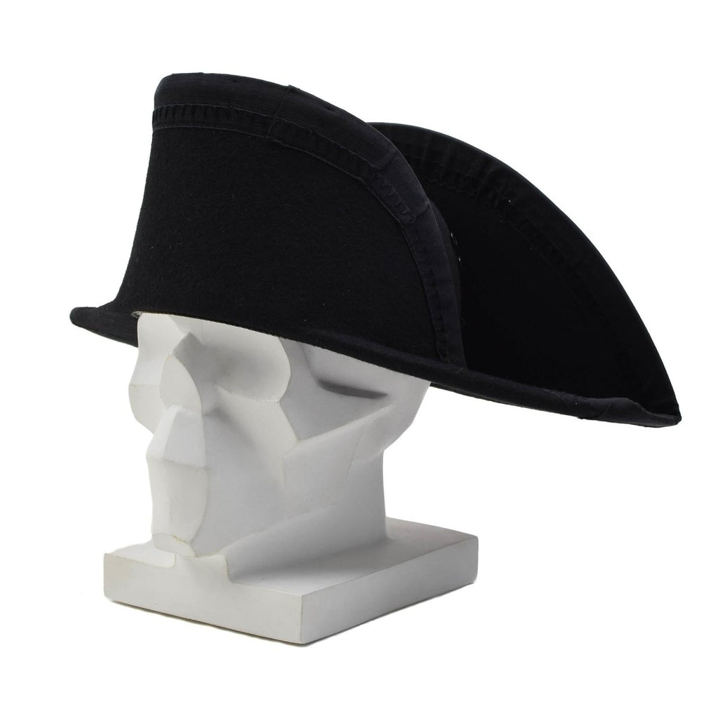Fabriqué dans un matériau robuste, le chapeau conserve sa forme structurée et son aspect élégant. La couleur noire profonde renforce son caractère officiel et intemporel. Son design incurvé unique le rend immédiatement reconnaissable et hautement recherché parmi les collectionneurs de souvenirs militaires et policiers.