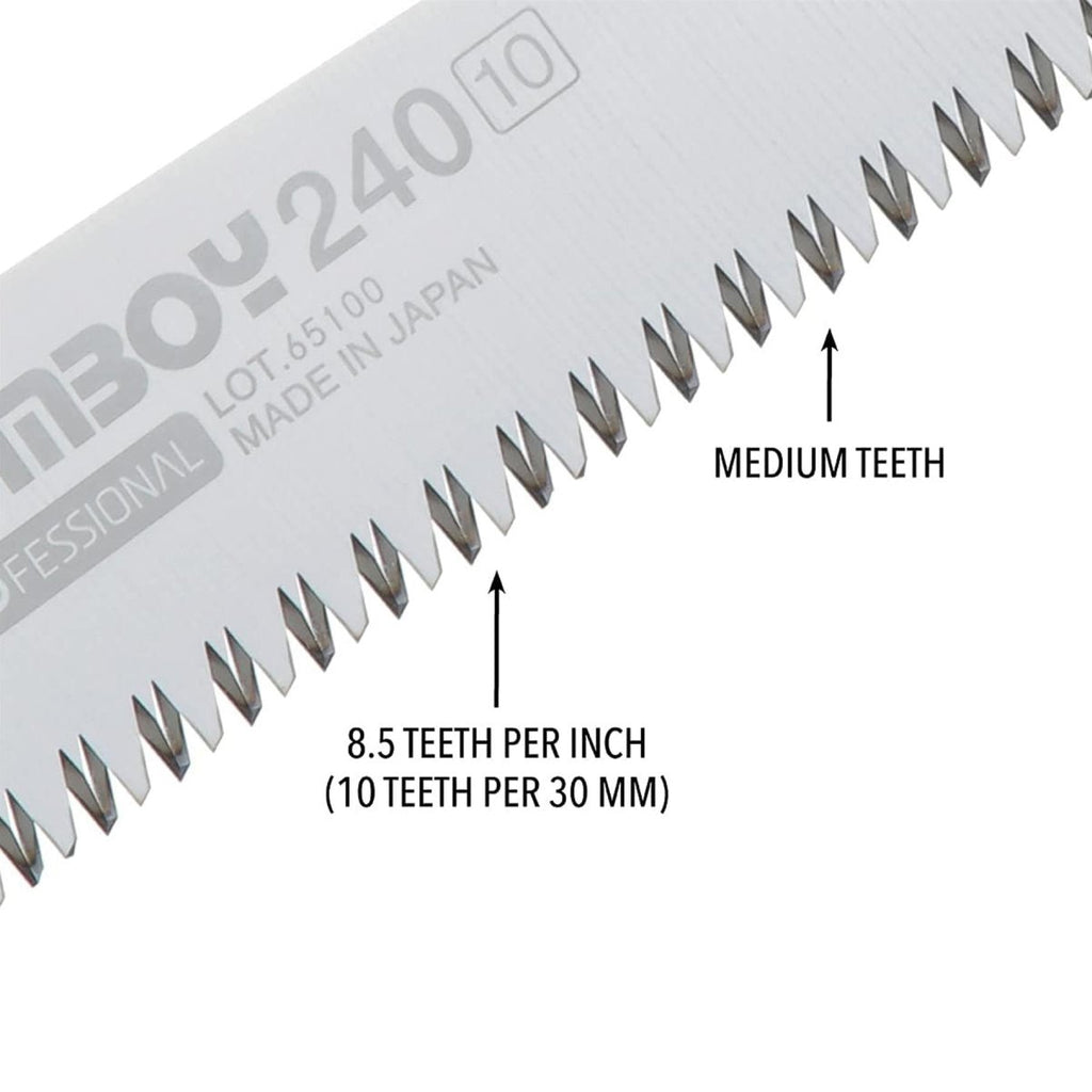 - La lame en acier inoxydable de 240 mm comporte 10 dents tous les 30 mm, garantissant des coupes nettes à chaque fois. Cette scie offre des performances supérieures, ce qui en fait un outil essentiel pour tout amateur de plein air.