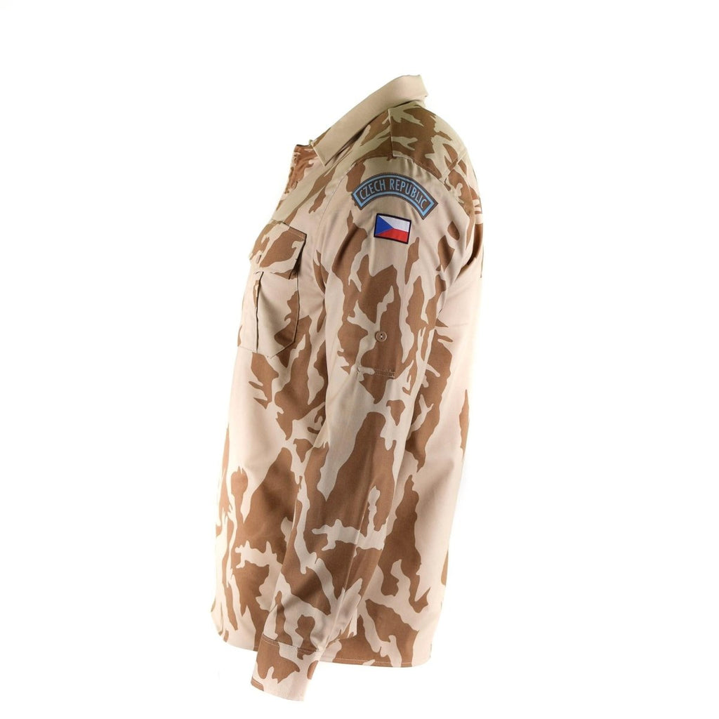 - La chemise camouflage désert est dotée de patchs, notamment du drapeau tchèque, qui ajoutent une touche militaire authentique à votre tenue. Ces patchs mettent non seulement en valeur votre patriotisme, mais améliorent également l'apparence générale.