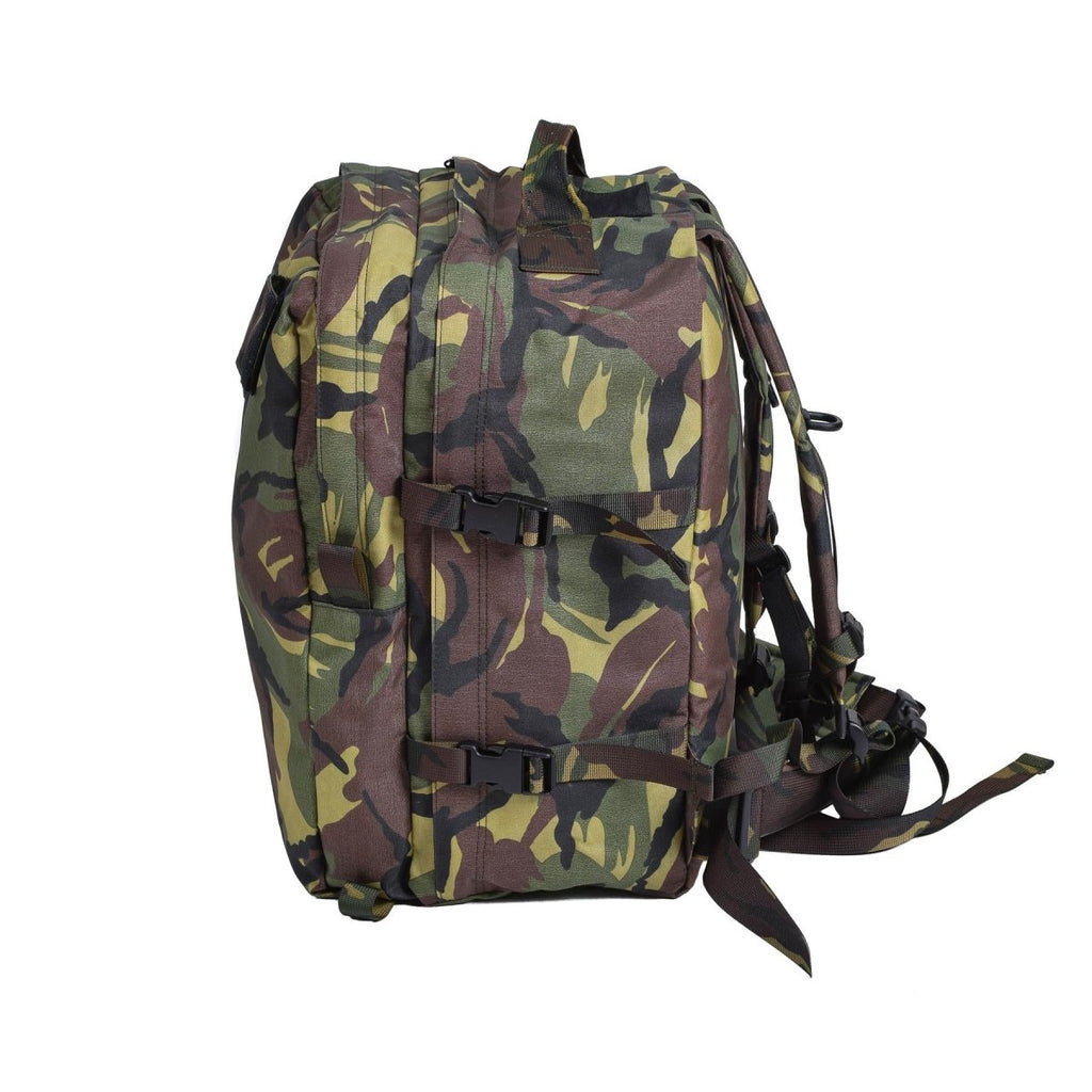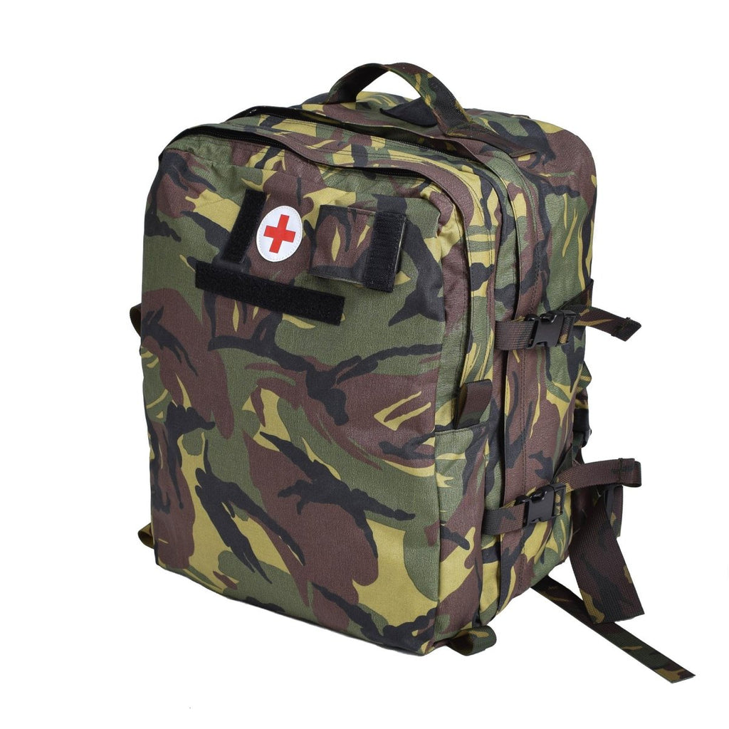 Présentation du véritable sac à dos militaire néerlandais Cordura fabriqué à partir d'un matériau Cordura durable en camouflage boisé DPM. Ce sac à dos de trousse de premiers secours résiste à une utilisation intensive dans divers environnements.