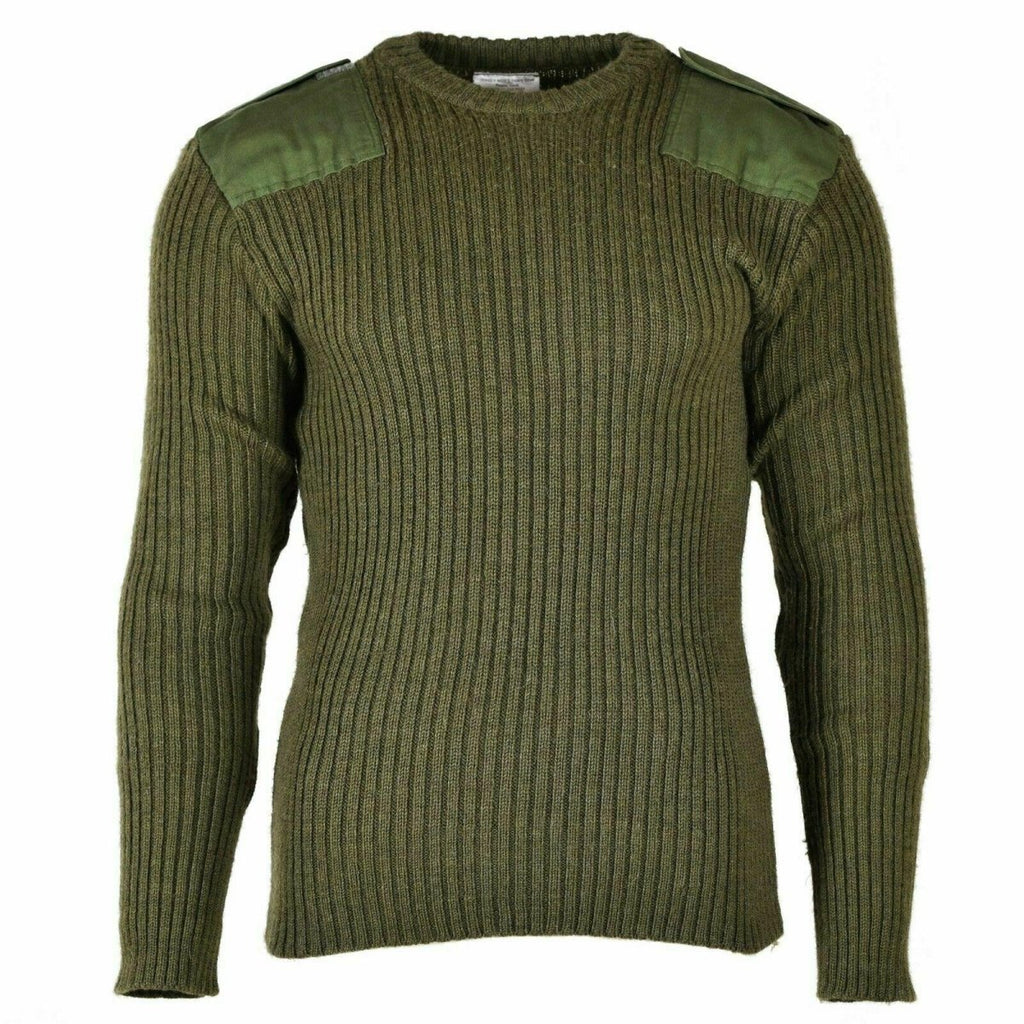 Pull authentique de l'armée britannique Commando en laine verte olive pour homme