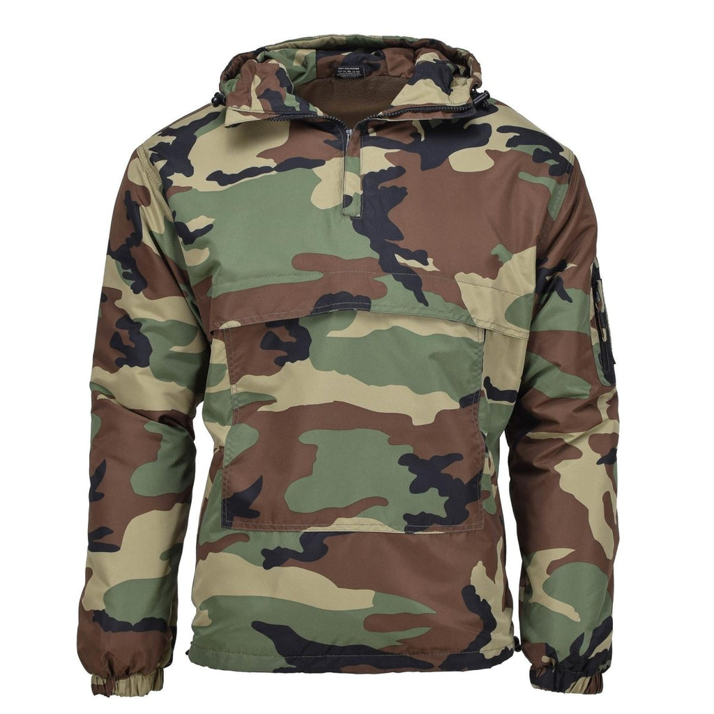 La veste de combat militaire MIL-TEC de style anorak de camouflage forestier est une veste d'hiver conçue pour être utilisée dans des environnements forestiers. Elle est dotée d'une coque extérieure coupe-vent et d'une capuche avec doublure pour offrir chaleur et protection par temps froid. Elle est conçue pour un usage militaire et peut également être utilisée dans diverses activités de plein air.