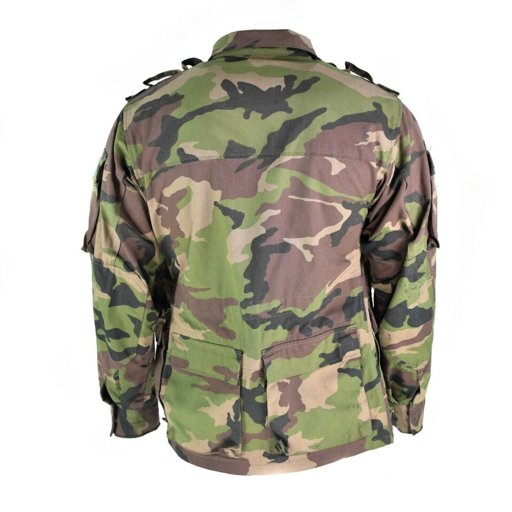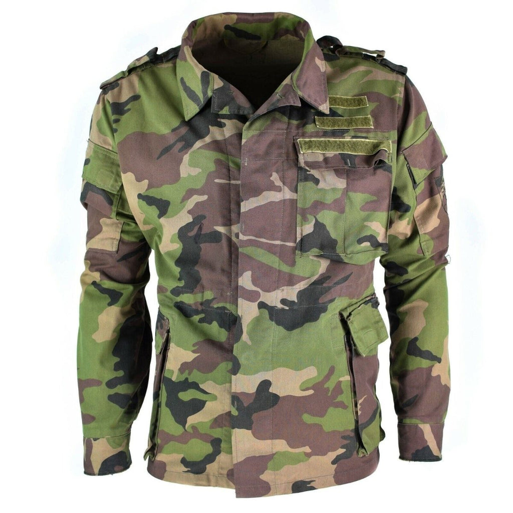 La veste militaire slovaque originale vintage M97 Camouflage est une veste utilisée par les forces armées slovaques à la fin des années 1990. Il est fabriqué à partir d'un matériau durable et résistant à l'eau et présente un motif camouflage conçu pour se fondre dans les environnements boisés.