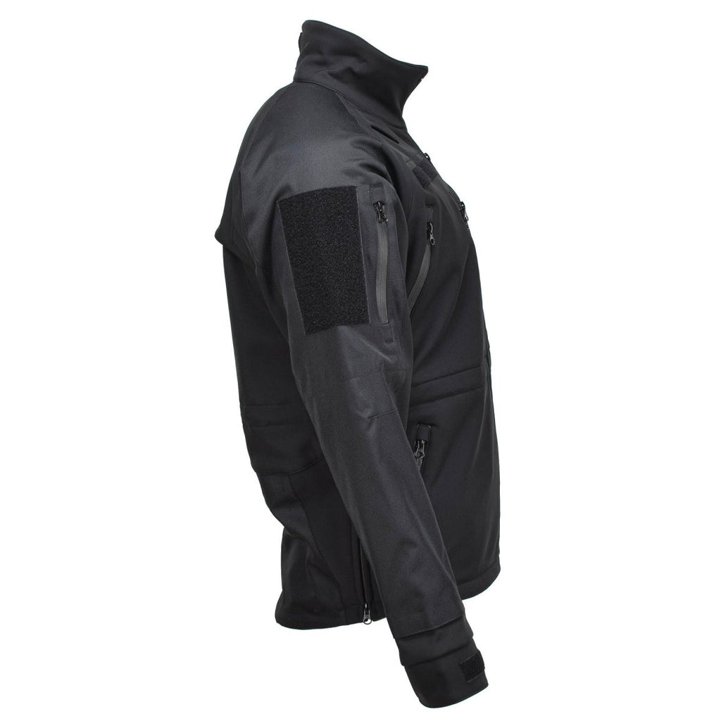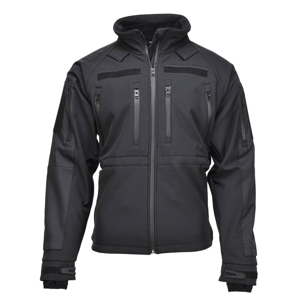 • Cette veste est confectionnée dans un matériau softshell, qui assure flexibilité et confort. Conçu selon des spécifications militaires, il offre une protection contre les éléments tout en permettant une liberté de mouvement. La couleur noire élégante offre une polyvalence, ce qui la rend adaptée à une variété d'occasions.