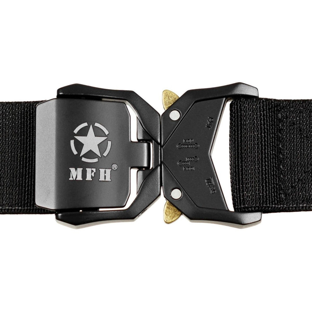 MFH Quick Release Tactical Web Belt Elastic Adjustable Polypropylene Black