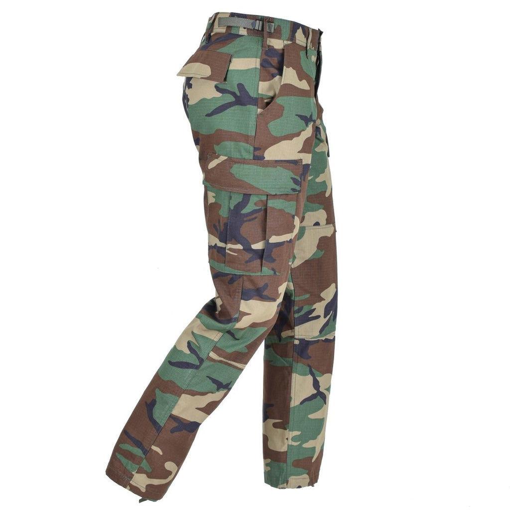 - Moreover, crafted from rugged ripstop material, they resist tearing and ripping, ensuring durability. Furthermore, the woodland camouflage pattern aids in blending into natural surroundings seamlessly. With multiple pockets, these woodland bdu trousers cater to various outdoor activities, from hunting to camping and military training.