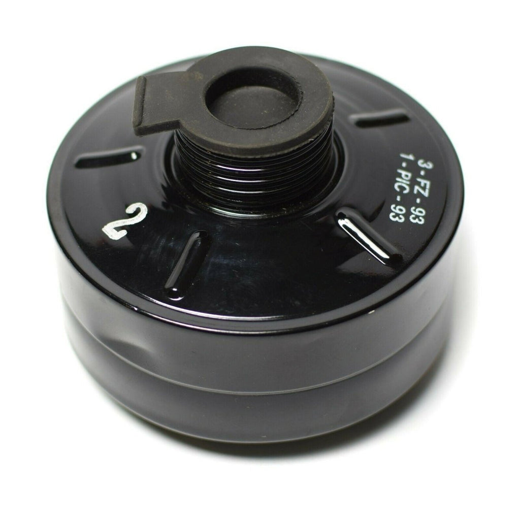 - With its universal 40mm threading, this gasmask filter fits most standard masks, highlighting its versatility and compatibility. Its compact size and durable construction make it a visually appealing and practical addition to any collection. The iconic design offers a glimpse into the critical role these filters played in protecting individuals in high-risk environments.