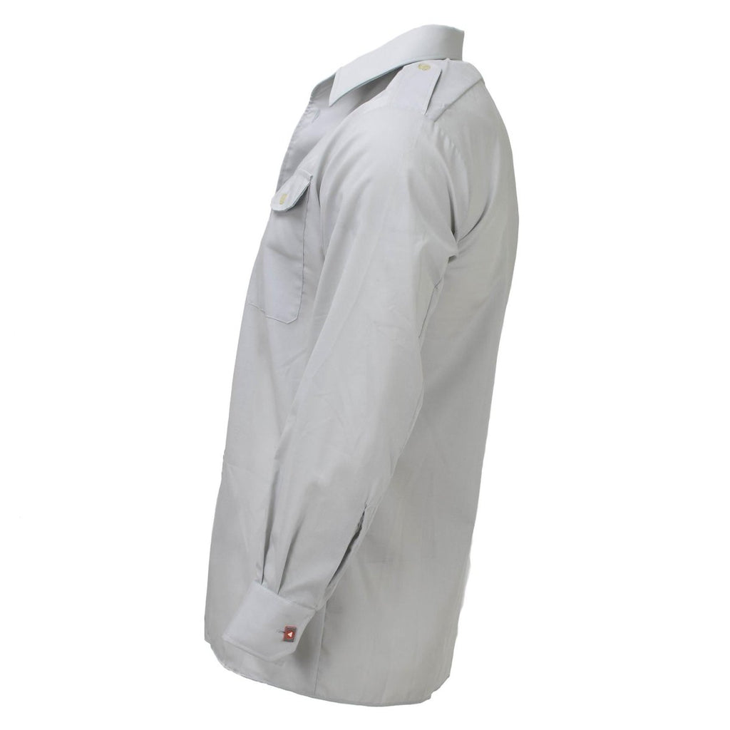 - Therefore, designed for year-round wear, this gray military shirt's lightweight construction ensures breathability.. Keeping you cool and comfortable even during warmer days. The collared neckline adds a polished look. Making it equally suitable for casual outings and formal occasions.