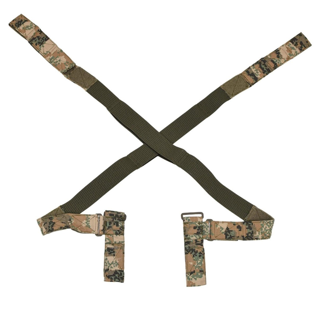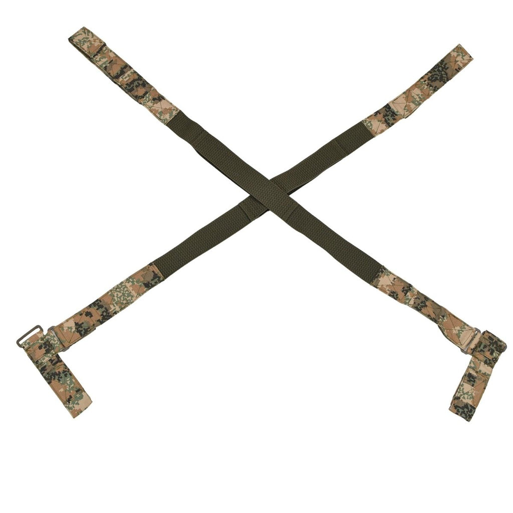 Constructed from strong elastic webbing with reinforced fabric sections, the suspenders maintain flexibility while ensuring reliable support. The crossed back design allows balanced weight distribution, reducing pressure on the waist when carrying equipment or wearing heavier military clothing. Adjustable straps allow the fit to be customized for different body types and gear setups.