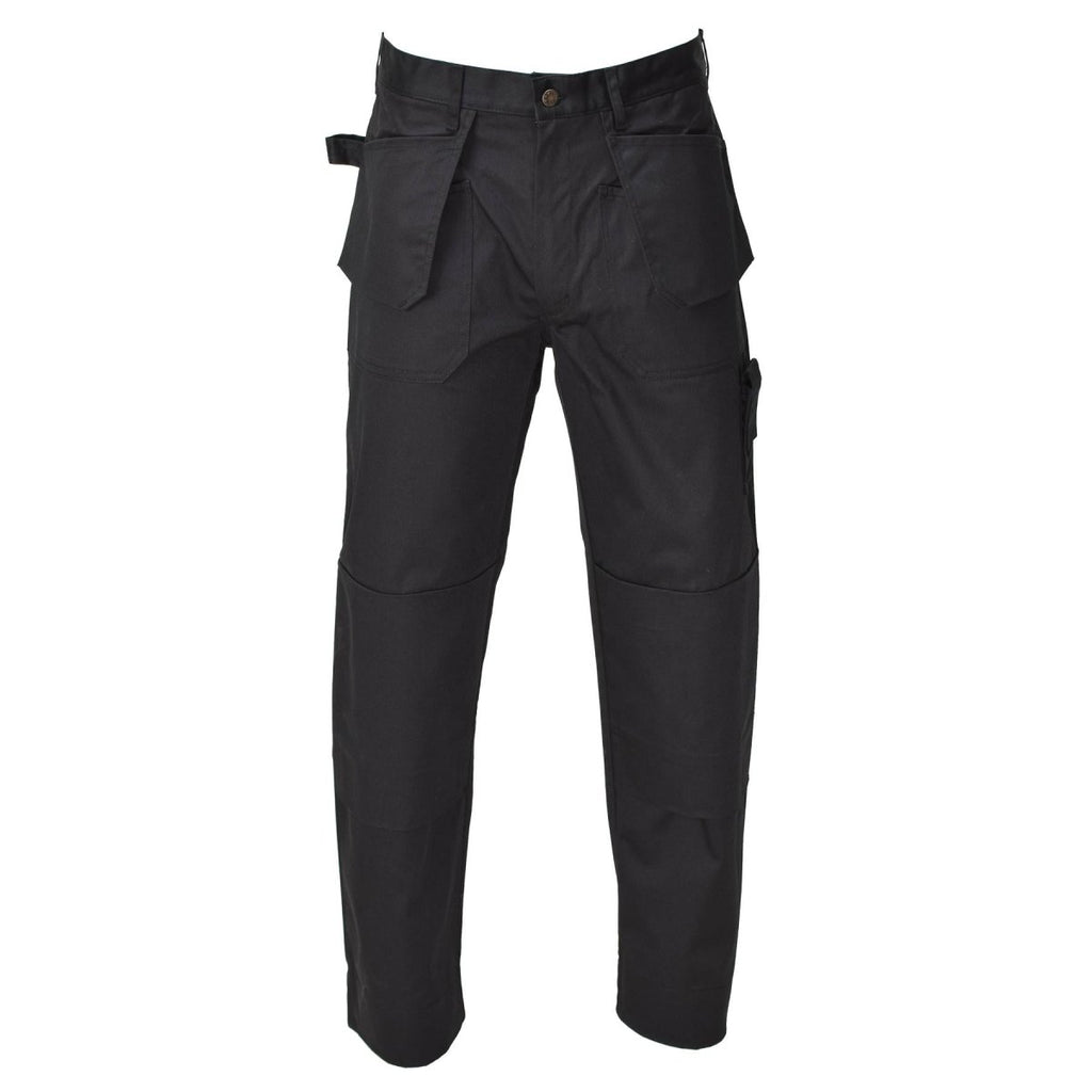 • In classic black, these loose workwear pants suit military needs, effortlessly concealing stains and dirt. Crafted from durable cotton or a cotton blend, they withstand the rigors of military duty.