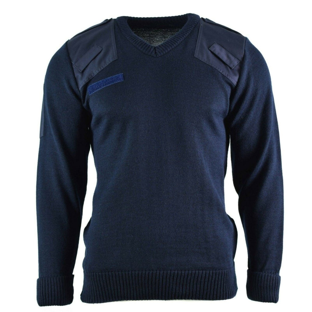 - Crafted with the needs of military personnel in mind, this sweater features a timeless v-neck design and comes in a rich dark blue color. Its strong construction ensures it can handle tough situations while keeping you comfortable.