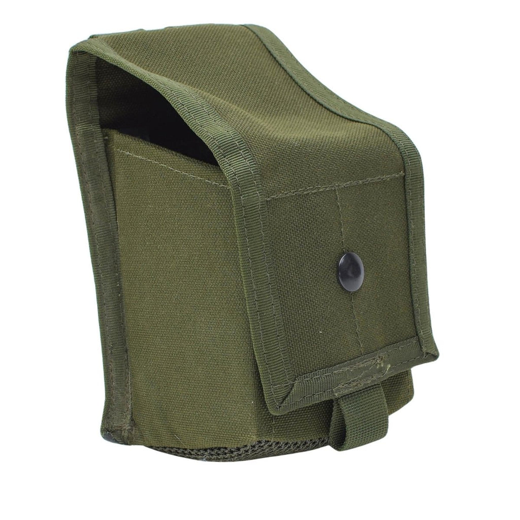- Made from durable nylon, this pouch offers long-lasting performance in tough conditions. Its olive green color blends well with military and tactical gear, providing a practical and versatile storage solution. The pouch features a secure flap with a snap button closure to ensure the magazines stay safely in place.