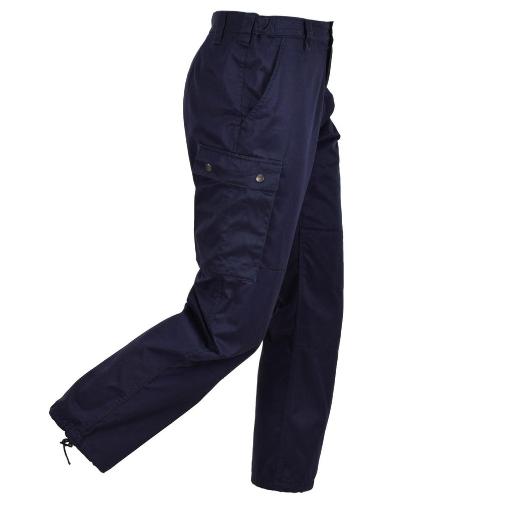 • A zip fly ensures quick and hassle-free wear, while an elasticated and adjustable waist allows a secure and customizable fit. Reinforced knees add extra durability, making these pants ideal for physically demanding environments. Large cargo pockets provide ample storage for essentials, offering both convenience and practicality. The classic design reflects authentic military style, adding a rugged yet polished touch to any outfit.
