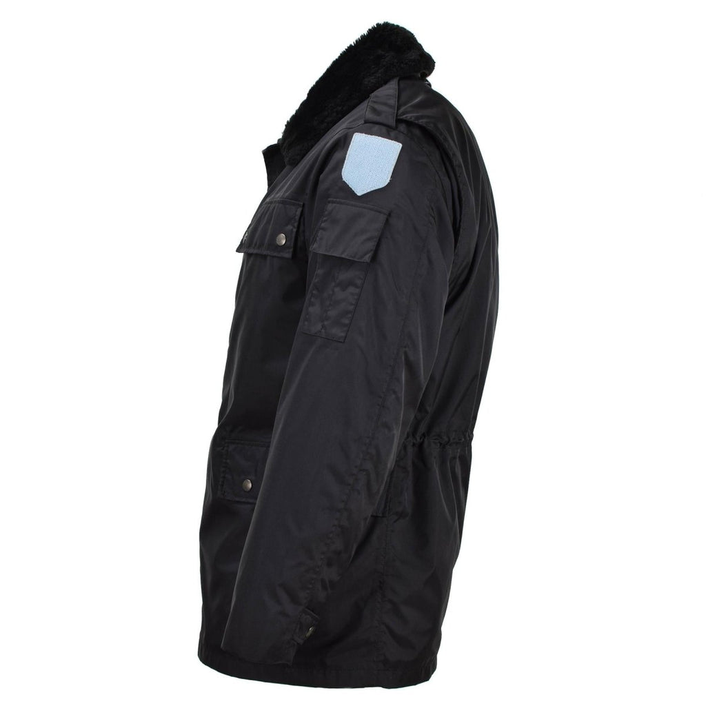 Original French military police rain jacket lined outdoor army faux fur Black