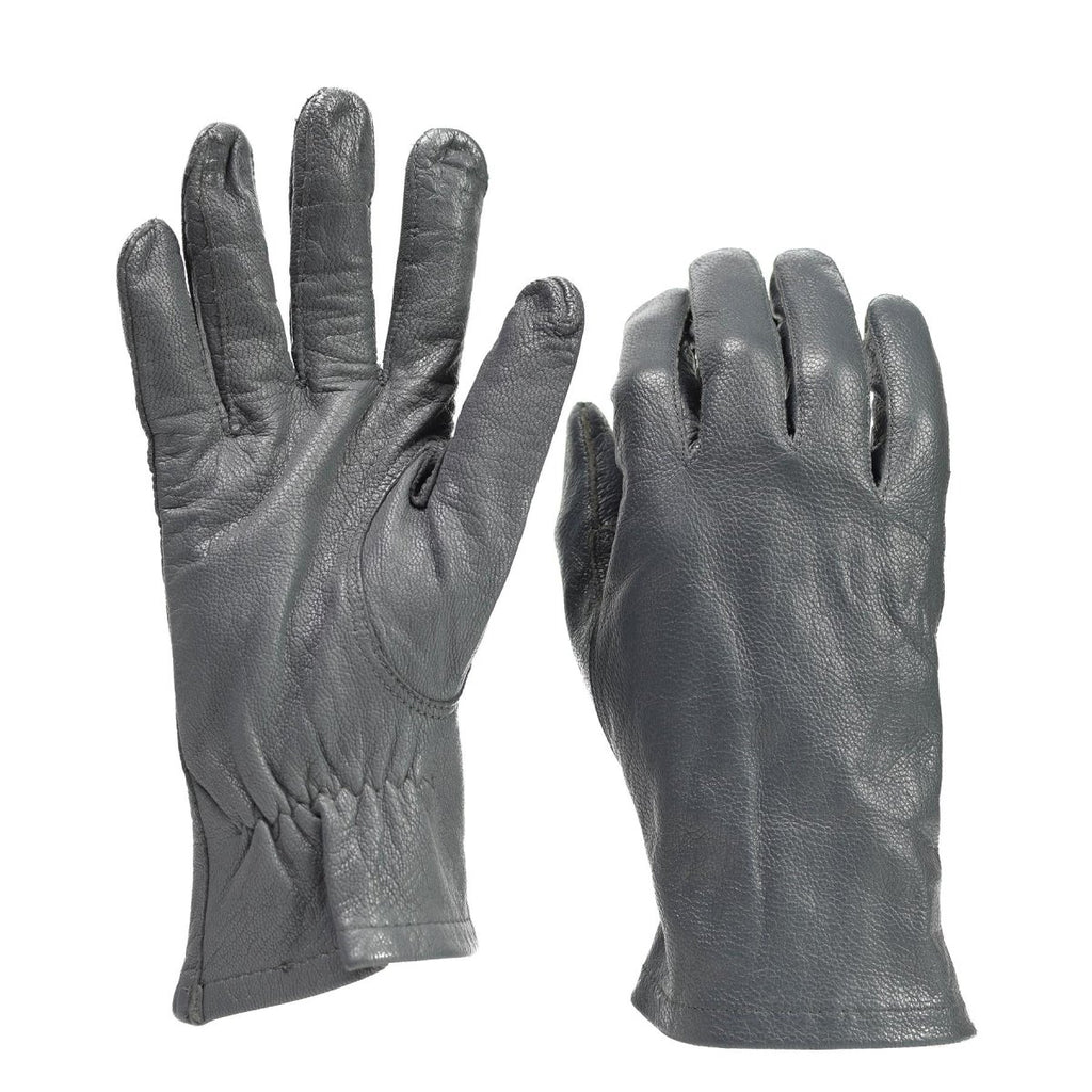 - Crafted from high-quality gray leather, these gloves provide both durability and classic sophistication. Sourced from German military surplus, they are a true reflection of craftsmanship and military precision.