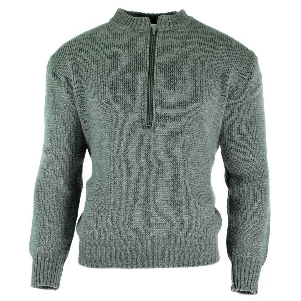 - The pullover features a classic gray design with a crew neck and a convenient quarter-zip front. You can adjust the zipper for added ventilation when needed. The elastic waist and cuffs offer a snug fit, helping to retain warmth and block out cold winds. This functional design makes the Swiss military pullover a reliable option for outdoor activities like hiking, camping, or any rugged adventures.