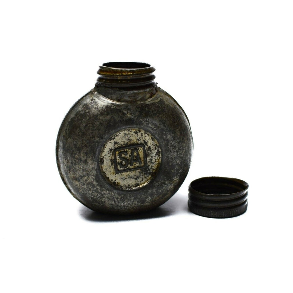 Authentic WWII Era: These rifle oiler bottles are genuine artifacts from the World War II period, providing a tangible connection to historical events. The dark-colored metal finish and SA stamps on each bottle attest to their authenticity and historical significance.